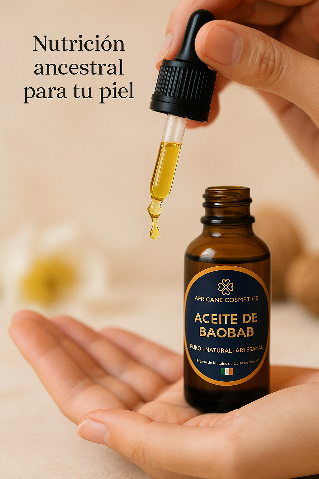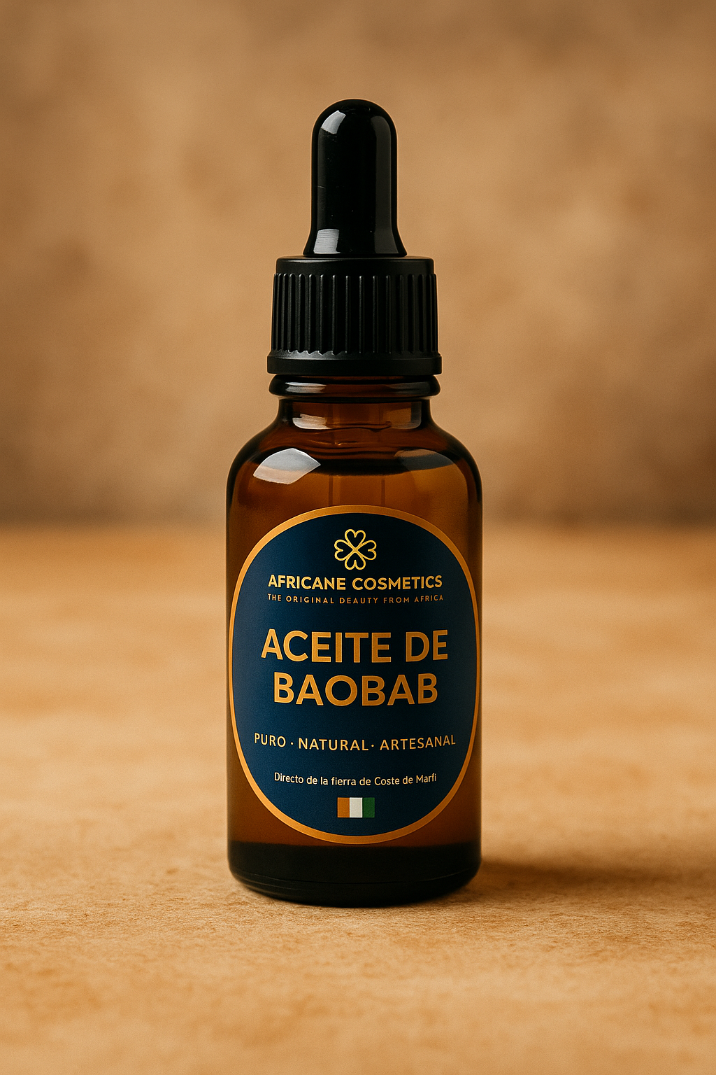 Descubre el auténtico aceite de baobab, directamente desde Costa de Marfil. En Africane Cosmetics, traemos este tesoro africano sin intermediarios, trabajando mano a mano con productores locales para garantizar un producto puro, ético y de la más alta calidad.
